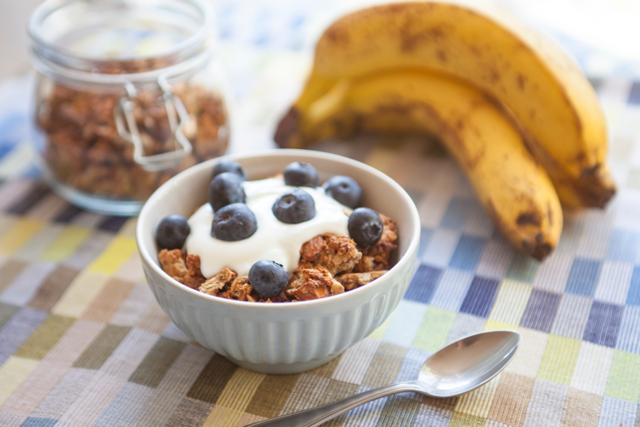 As it’s a banana granola you need less sugar – in form of maple syrup in this case – than with your usual granola.